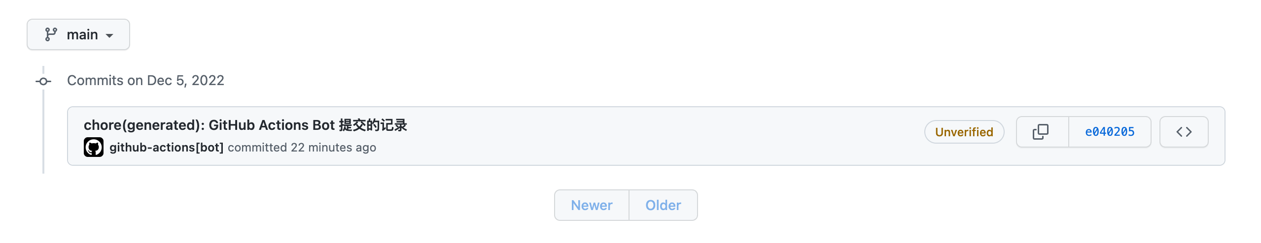 git commit -m "chore(generated): GitHub Actions Bot 提交的记录"